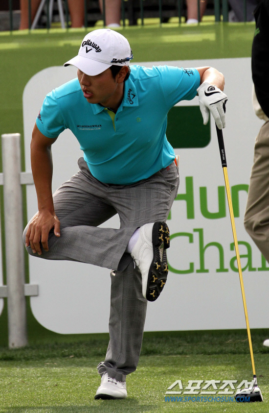 배상문이 23일(한국시각) 미국 캘리포니아주 라퀸타의 PGA 웨스트 파머 코스에서 벌어진 PGA 투어 휴마나 클래식 마지막 라운드 1번 홀에서 티샷을 하기에 앞서 스트레칭으로 몸을 풀고 있다. 라퀸타(미 캘리포니아주)=이사부 기자 golf@sportschosun.com