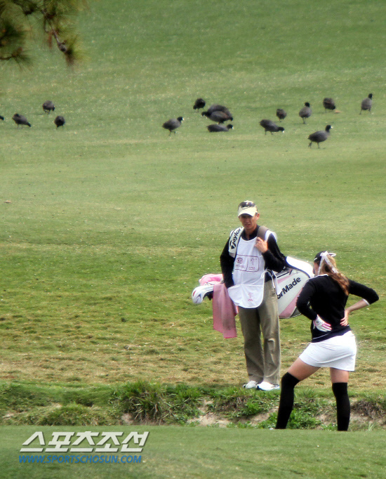 폴라 크리머(미국)가 25일(한국시각) 미국 캘리포니아주 칼스배드의 라 코스타 리조트에서 벌어진 LPGA 투어 KIA 클래식 3라운드 9번 홀에서 그린 앞을 지나는 크릭에 두 번째 샷을 빠트린 뒤 허탈한 자세로 크릭 속의 공을 바라보고 있다. 칼스배드(미 캘리포니아주)=이사부 기자 golf@sportschosun.com