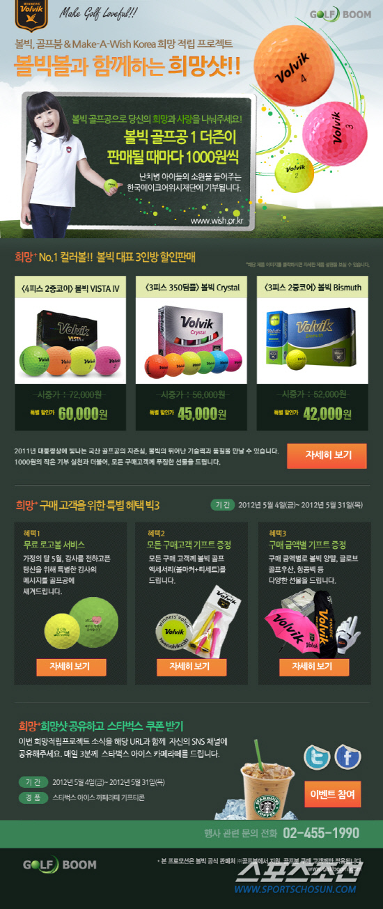 국산 골프공 브랜드인 볼빅과 골프공 유통업체인 골프붐이 5월 가정의 달을 맞이해 보다 의미있는 구매 프로모션을 기획, 난치병 환아들의 소원성취를 돕는 한국메이크어위