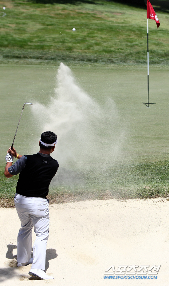 최경주가 15일(한국시간) 미국 샌프란시스코 인근 댈리 시티의 올림픽 클럽에서 열린 제112회 US오픈 첫 라운드 2번 홀 그린 사이드 벙커에서 완벽하게 탈출하고 있다. 댈리 시티(미 캘리포니아주)=이사부 기자 golf@sportschosun.com