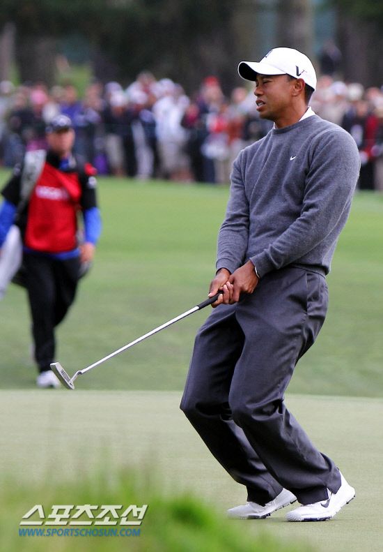 타이거 우즈가 15일(한국시간) 미국 샌프란시스코 인근 댈리 시티의 올림픽 클럽에서 열린 제112회 US오픈 첫 라운드 9번 홀에서 버디 퍼트가 컵을 살짝 빗겨가자 아쉬워하고 있다. 댈리 시티(미 캘리포니아주)=이사부 기자 golf@sportschosun.com