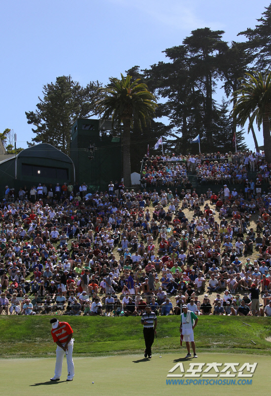 최경주가 US오픈 3라운드에서 갤러리가 지켜보는 가운데 퍼트를 하고 있다. 샌프란시스코=이사부 기자