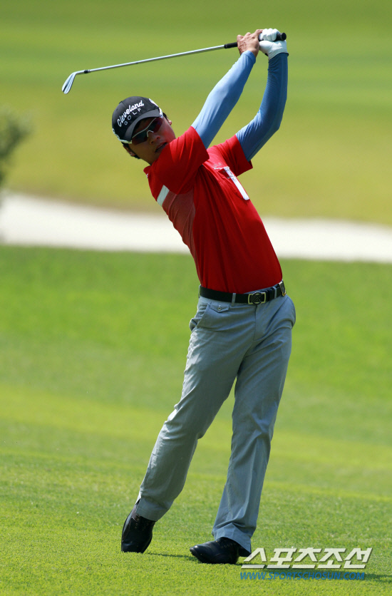 볼빅-힐데스하임 오픈 첫날 공동 선두로 나선 마수길이 16번홀에서 아이언샷을 날리고 있다. 사진제공=KPGA