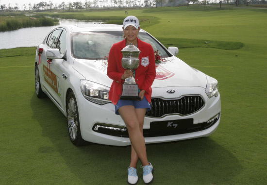 이미림이 26일 송도 잭니클라우스GC에서 열린 기아자동차 제26회 한국여자오픈 골프선수권대회에서 우승한 뒤 부상으로 받은 K9 승용차 앞에서 기쁨을 만끽하고 있다. 사진제공=KLPGA