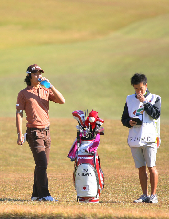 이시카와 료는 18일 천안 우정힐스골프장에서 열린 대회 1라운드에서 버디 2개 보기 4개 더블보기 1개를 묶어 4오버파 75타를 적어내며 40위권에 머물렀다. 특히 3퍼트를 3차례나 하며 더블 보기도 적어내 퍼트 라인 적응에 적잖은 어려움을 겪었다.