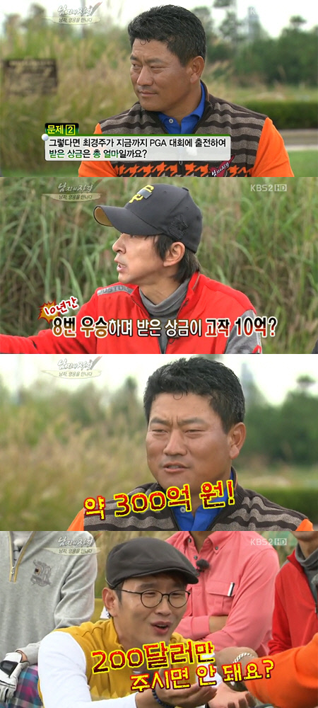 답을 모두 들은 최경주는 "대략 2천 7백 4십만 달러 정도 된다. 한국 돈으로는 약 300억 원 정도"라고 말해 모두를 놀라게 했다.