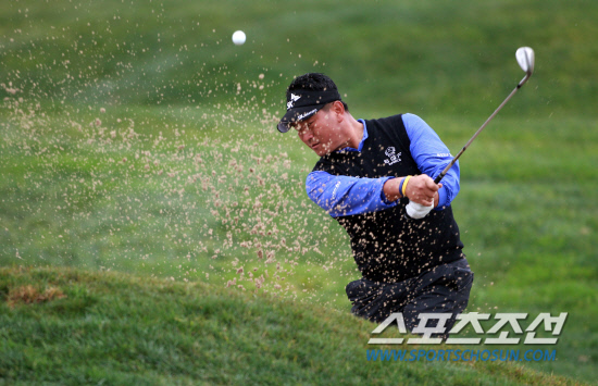 | 한국선수로는 유일하게 액센츄어 매치플레이에 출전한 최경주가 벙커샷을 하고 있다. 사진제공=SK텔레콤 |