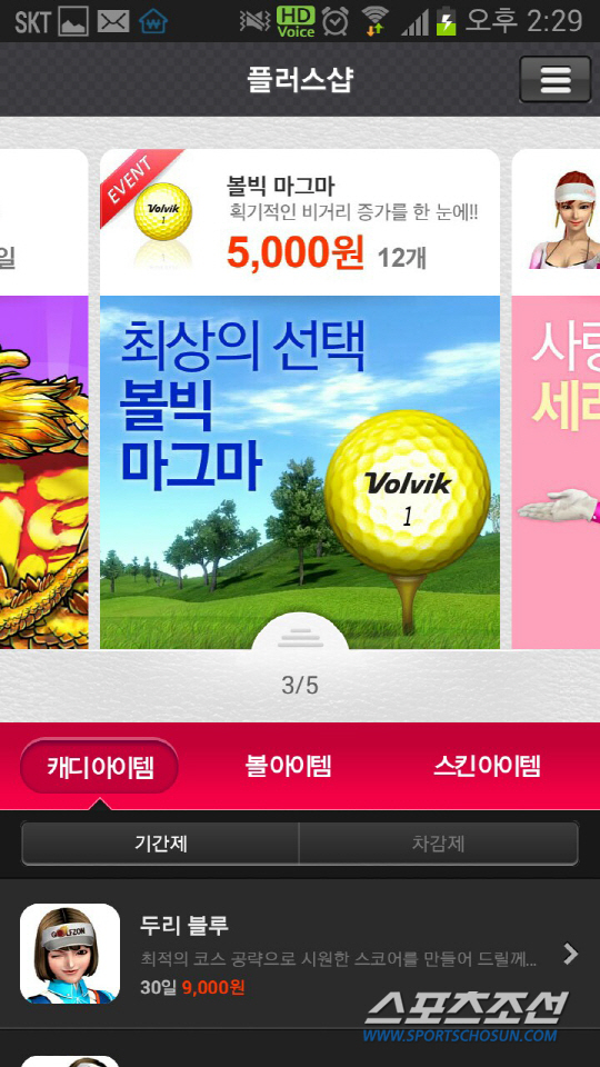 토털골프문화기업 골프존은 스크린골프 라운드의 즐거움을 더하는 '골프존 플러스' 서비스를 스마트폰에서 편리하게 즐길 수 있는 '모바일 플러스샵'을 런칭했다. 이에 따라 골프존 시스템 내에서 사용 가능한 캐디 및 볼, 스킨 등의 상품을 구매할 수 있는 '골프존 플러스' 서비스를 골프존닷컴(www.golfzon.com) 홈페이지뿐만 아니라 스마트폰 골프존앱을 통해 바로 이용할 수 있게 됐다.