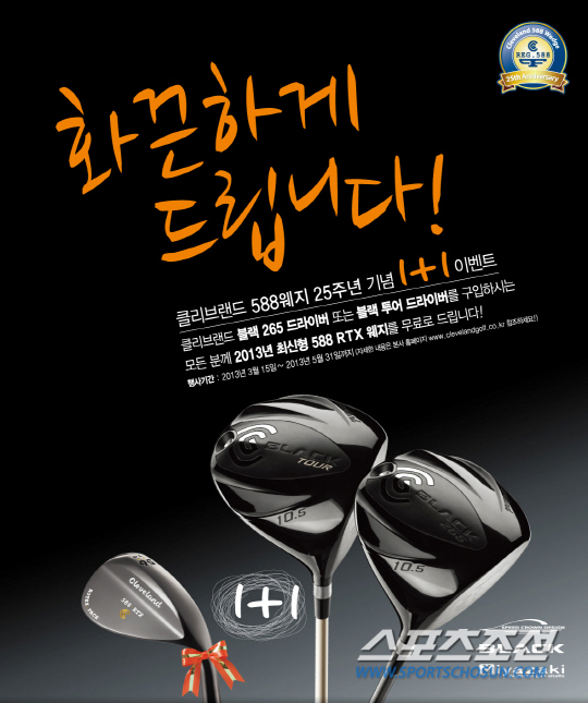 클리브랜드 골프는 오는 15일부터 5월 31일까지 블랙 드라이버나 블랙 투어 드라이버, 블랙 레이디 드라이버를 구매하는 모든 고객에게 2013년 최신형 588RTX 웨지를 무료 증정하는 이벤트를 진행한다. 블랙 드라이버 구매 시 매장에서 588RTX Blade 블랙 펄 모델의 구매등록신청서에 원하는 로프트를 기입하여 작성하면 클리브랜드 골프 본사에서 고객에게 직접 발송한다. 또한 블랙 드라이버 구매 후 홈페이지에 정품 등록을 하면 웨지와 함께 클리브랜드 골프의 모자도 함께 받을 수 있다.