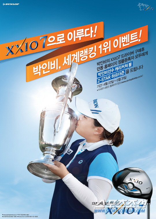 던롭스포츠코리아는 올해 첫 메이저대회인 나비스코 챔피언십 제패와 함께 미국여자프로골프(LPGA)투어 상금랭킹 1위를 달리고 있는 박인비의 선전을 기념, 고객 사은 이벤트를 진행한다. '젝시오7으로 이루다! 박인비 세계랭킹 1위 이벤트'는 박인비가 사용하고 있는 젝시오7 드라이버를 구매한 고객을 대상으로 실시한다. 제품 구매 후 던롭코리아 홈페이지에서 정품 등록을 한 전원에게 박인비 프로의 캐리커쳐가 담긴 '스릭슨 Z-STAR' 볼 하프더즌을 증정한다. 이번 이벤트는 4월 22일부터 오는 5월 31일까지 진행하며 증정품 배송은 1차 5월 13일, 2차 6월 3일로 나뉘어 전달할 예정이다. 자세한 내용은 던롭코리아 홈페이지(www.dunlopkorea.co.kr)에서 확인할 수 있다.