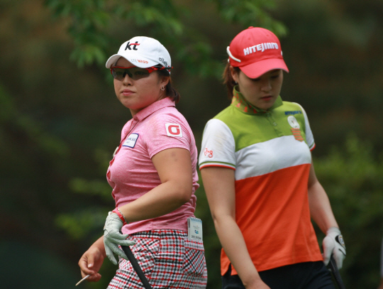 장하나(왼쪽)와 전인지. 사진제공=KLPGA