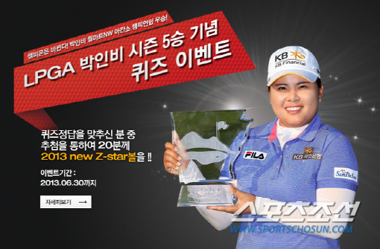 던롭스포츠코리아는 '월마트 NW 아칸소 챔피언십'에서 연장 우승을 거둔 세계여자골프랭킹 1위 박인비(25·KB금융그룹)의 시즌 5승(통산 8승) 달성을 기념해 우승 이벤트를 진행한다. '챔피언은 바뀐다! 박인비 시즌 5승 기념 퀴즈 이벤트'는 박인비가 사용하고 있는 드라이버 모델명과 사용구를 맞추는 퀴즈형식으로, 정답을 맞춘 응모자 중 추첨을 통해 선정된 20명에게 신제품 NEW 스릭슨 Z-STAR 볼을 증정한다. 이번 이벤트는 오는 30일까지 던롭코리아 홈페이지(www.dunlopkorea.co.kr)에서 진행한다. 당첨자 발표는 7월 2일 홈페이지에서 확인할 수 있다.