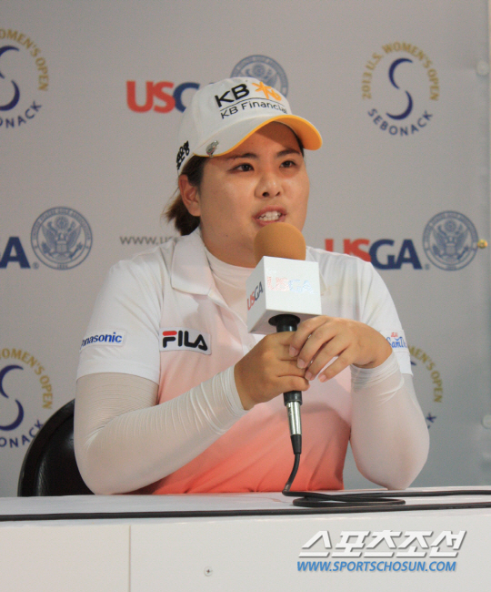 박인비가 US여자오픈 개막을 하루 앞두고 공식 기자회견에서 질문에 대답하고 있다. 사진제공=IB스포츠