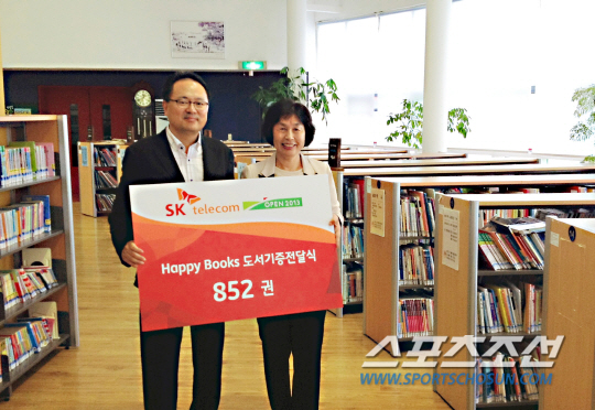 지난 21일 기적의 도서관에 열린 '해피북스 도서 기증식'에서 스포츠단 오경식 팀장은 서귀포시 주민생활지원국 오무순 국장에게 852권(8520만원 상당)의 어린이 도서를 전달했다. 스포츠단은 지난 5월15일부터 나흘간 제주 핀크스 골프장에서 열린 SK텔레콤 오픈 본선에 진출한 60위권 선수들이 기록한 이글과 버디수만큼 도서를 마련했다. SK텔레콤 스포츠단은 '해피북스' 외에도 제주 지역 내 다문화 가정 어린이들을 대상으로 한 서울문화체험 프로젝트인 '해피트립' 나눔행사를 오는 28일부터 30일까지 진행 할 예정이다.