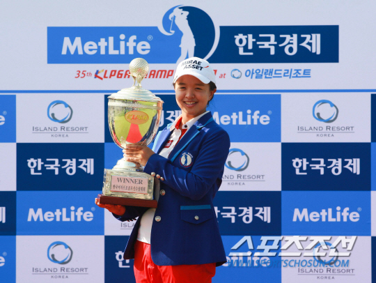 KLPGA 투어 메이저대회인 매트라이프 한국경제 KLPGA 챔피언십에서 우승을 차지한 김세영이 트로피를 들고 환하게 웃고 있다. 사진제공=KLPGA