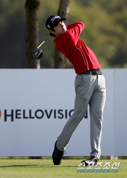 | 이틀 연속 단독 선두를 달린 김태훈이 2라운드 2번홀에서 드라이버 티샷을 날리고 있다. 사진제공=CJ |