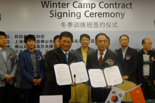 최경주 재단은 30일 '중국 광동 불산의 에머랄드 레이크골프장과 재단 골프 꿈나무를 위한 동계 훈련 및 중국 차세대 골프 유망주 교육에 관한 제휴를 맺었다'고 밝혔다.