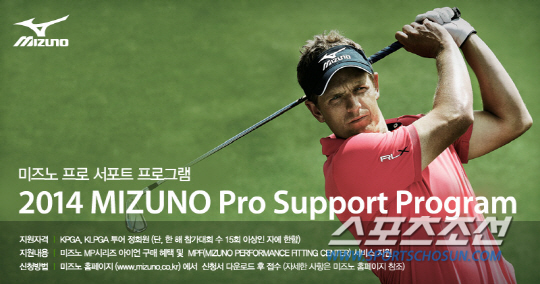 한국미즈노가 국내 투어 프로의 경기력 향상을 돕기 위해 '미즈노 프로 서포트 프로그램(MIZUNO Pro Support Program)을 진행한다. 이에 따라 지원을 원하는 프로를 모집한다. 미즈노 프로 서포트 프로그램은 한국프로골프협회(KPGA)투어와 한국여자프로골프(KLPGA)투어 정회원 자격을 지닌 프로를 위해 마련된 것으로 루크 아이언으로 잘 알려진 미즈노 MP 시리즈 아이언을 비롯한 클럽과 용품 구매 시 할인지원은 물론 세계 최고 수준의 시스템을 자랑하는 미즈노 MPF(Mizuno Performance Fitting Center)를 통해 선수 본인에게 최적화된 피팅 서비스를 무료로 제공하는 내용이다. 이번 프로그램은 국내 투어 정회원 중 한 해 기준 15개 이상 대회에 참가한 자에 한해 참여가 가능하며 미즈노 홈페이지(www.mizuno.co.kr)에서 신청서를 다운로드 받아 작성 한 후 팩스를 통해 지원하면 된다.