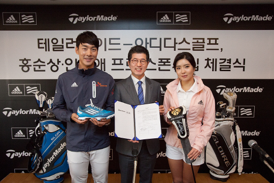 테일러메이드-아디다스골프 코리아가 '미남 골퍼' 홍순상(33)과 '미녀 골퍼' 안신애(24)와 클럽 및 의류·골프화 스폰서십 계약을 했다.