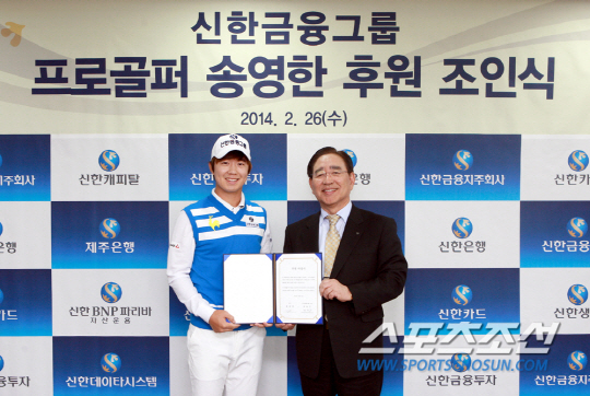 신한금융그룹은 지난해 한국남자프로골프 신인상을 받은 송영한(23)과 2015년까지 후원한다. 송영한은 신한금융그룹의 로고가 새겨진 모자와 유니폼을 착용하고 국내외 대회에 출전한다. 2012년부터 본격적으로 정규투어에서 뛴 송영한은 지난해 먼싱웨어 매치플레이챔피언십 2위, 동부화재 프로미오픈 공동 2위에 올랐다.
