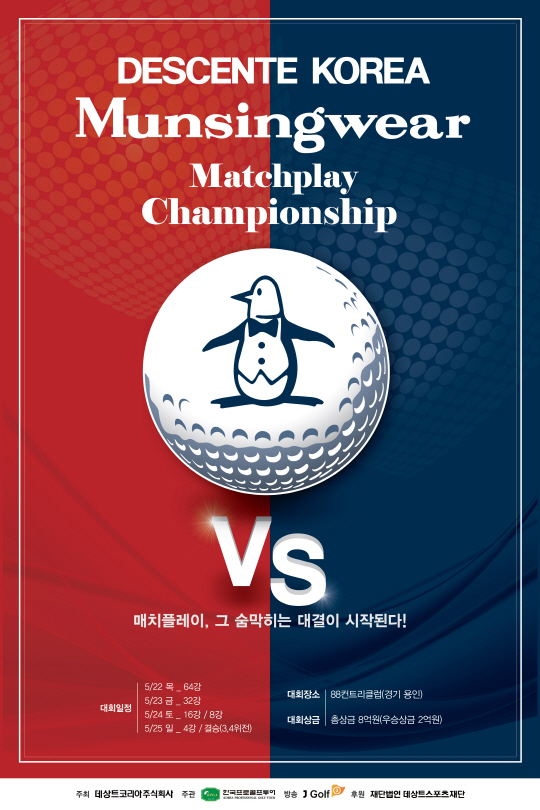 올해로 5회째를 맞이하는 한국프로골프투어(KGT) 유일의 매치플레이 경기 '데상트코리아 먼싱웨어 매치플레이 챔피언십(총상금 8억원, 우승상금 2억원)'이 올해 상금 규모 확대 및 대회 일정을 전면 바꿔 달라진 모습으로 개최된다. 서울과 접근성이 용이한 경기도 용인의 88CC에서 대회가 펼쳐져 많은 갤러리들의 방문이 예상된다.