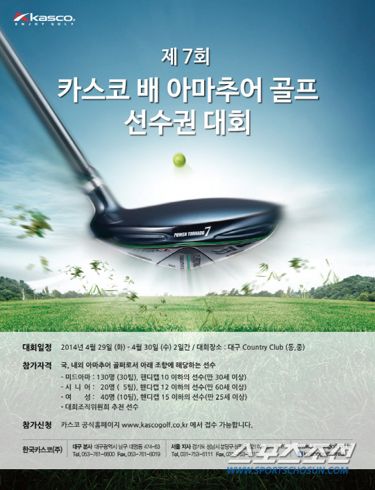 제 7회 카스코배 아마추어 골프선수권 대회는 미드아마, 시니어, 여성부 등 3개 부문으로 나누어 진행된다. 마드아마부는 만 30세 이상 핸디캡 10 이하, 시니어부는 만 60세 이상 핸디캡 12 이하, 여성부는 만 25세 이상 핸디캡 15이하의 골퍼라면 참가할 수 있다. 이번 대회는 미드아마추어 골프대회의 시작을 알리는 대회로 겨울 시즌 갈고 닦은 실력을 점검해볼 수 있는 좋은 기회를 제공한다. 15일 오후 5시까지 한국카스코 홈페이지(www.kascogolf.co.kr)를 통해 참가신청을 하면 된다.