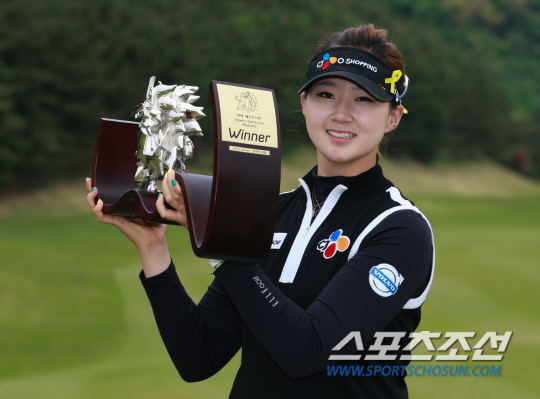 신인 백규정이 넥센·세인트나인 마스터즈에서 프로 데뷔 첫승 거둔 뒤 트로피를 들고 환하게 웃고 있다. 사진제공=KLPGA