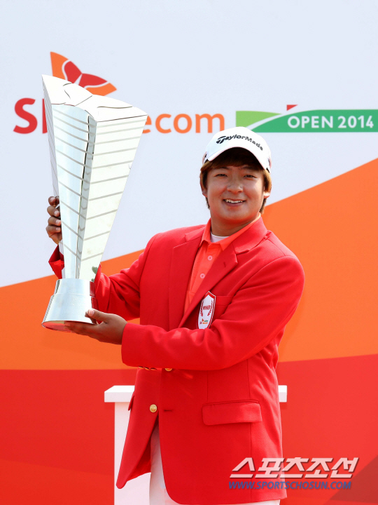 9년만에 우승을 차지한 김승혁이 SK텔레콤 오픈 우승 트로피를 들고 환하게 웃고 있다. 사진제공=KPGA