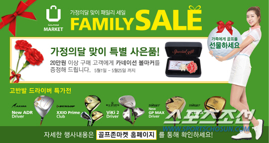 토털골프문화기업 ㈜골프존의 골프용품 전문매장 골프존마켓(www.golfzonmarket.com)에서는 5월 가정의 달을 맞이하여 패밀리 세일을 오는 25일까지 진행한다. 아키라 신 ADR 드라이버, 타겟 GP MAX 드라이버를 포함한 고반발 드라이버 특가전과 골프 꿈나무들을 위한 주니어 풀세트도 준비했다. 캘러웨이 탑플라이트 주니어 풀세트와 지브이투어 주니어 풀세트가 각각 19만원이고, 프로기어 주니어 풀세트를 50% 할인된 가격에 만나볼 수 있다. 골프 초보자의 라운드를 도와주는 PGA TOUR 비기닝 세트가 4만9000원이고, 숏게임 능력을 높여주는 PUTTIST 퍼팅 연습기가 9만9000원에 제공된다. 지브이투어 남성용, 여성용 풀세트는 40만원, 오딧세이 화이트 아이스 퍼터가 9만9000원으로 초특가 판매한다.