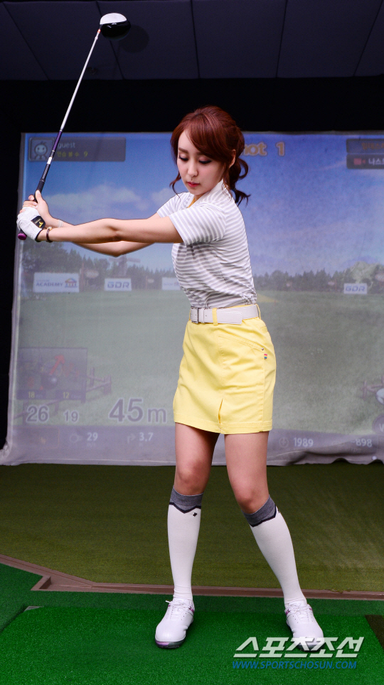 박지영 아나운서가 풀스윙 세번째 동작이자 다운스윙을 취하고 있다. 조병관기자 rainmaker@sportschosun.com