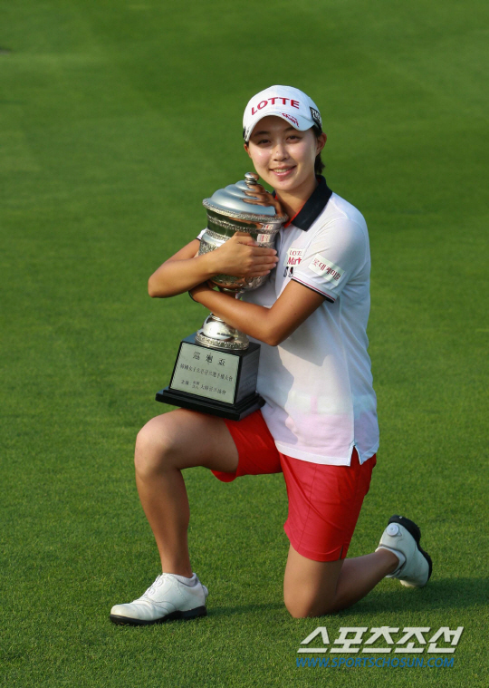 김효주가 한국오픈 우승 트로피를 끌어안고 환하게 웃고 있다. 사진제공=KLPGA