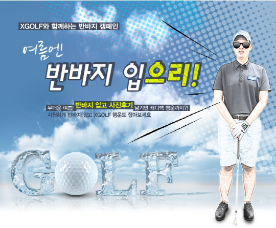 골프예약서비스 엑스골프(www.xgolf.com)는 반바지를 입고 골프를 치는 사진을 올리면 상품을 주는 행사를 오는 8월 30일까지 진행한다. 골프장에서 반바지 착용 인증샷을 엑스골프 홈페이지 사진 이용 후기로 등재하면 캐디백세트, 거리측정기 등을 준다. 엑스골프에서 골프장을 예약할 때 반바지 이모티콘이 있는 곳들은 반바지를 입고 골프를 칠수 있다.