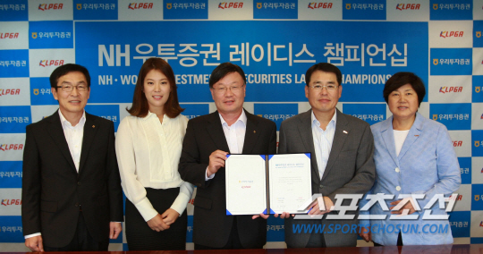 우리투자증권과 한국여자프로골프협회(KLPGA)는 28일 서울 영등포구 우리투자증권 본사에서 'NH우투증권 레이디스 챔피언십' 개최 협약 조인식을 갖고 2017년까지 3년간 계약을 연장했다. 우리투자증권은 2008년부터 올해까지 7년 동안 KLPGA 대회를 개최했다. 김원규 우리투자증권 대표이사는 "지난 7회에 걸친 우리투자증권 레이디스 챔피언십이 대한민국 여자골프 발전의 중요한 발판이었다면, 새롭게 8회를 맞이하는 대회는 모두가 함께 즐기는 골프대회로 발전시키겠다"고 말했다.