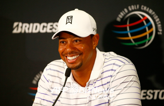 | 타이거 우즈가 PGA 투어 브리지스톤 인비테이셔널 개막을 하루 앞두고 열린 기자회견에서 환하게 웃고 있다. ⓒAFPBBNews = News1 |