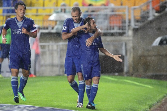 | 산토스가 골을 넣고 기뻐하고 있다. 사진제공=수원삼성 |