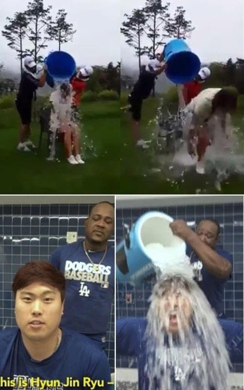 개그맨 김준호에게 지목받은 류현진은 영상에서 "부상으로 인해 아이스버킷 챌린지 동참이 며칠 늦어졌다"며 "기부도 하고 양동이 얼음물 샤워도 하겠다"라고 밝혔다.