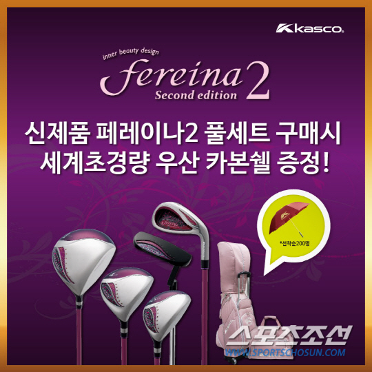 일본 카스코의 골프용품을 수입 판매하는 한국카스코㈜(www.kascogolf.co.kr)가 신제품 페레이나2 출시를 기념해 정품등록 이벤트를 진행한다. 페레이나2 풀세트를 구입한 후 한국카스코 공식 홈페이지에 정품등록을 하면 선착순 200명에게 초경량 카스코 카본쉘 우산을 증정한다. 카스코 페레이나2는 롱아이언과 우드 대신 유틸리티를 구성한 여성골퍼 맞춤 구성과 캐리어형 캐디백으로 여성골퍼의 사랑을 받고 있다.