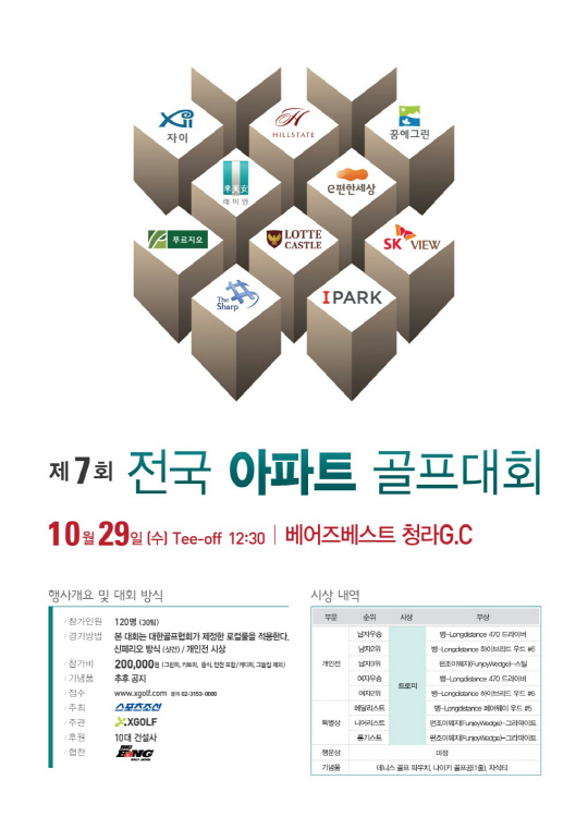 스포츠조선이 주최하는 제7회 스포츠조선배 아파트 골프대회가 오는 29일(수) 인천에 위치한 베어즈베스트 청라골프클럽에서 열린다.