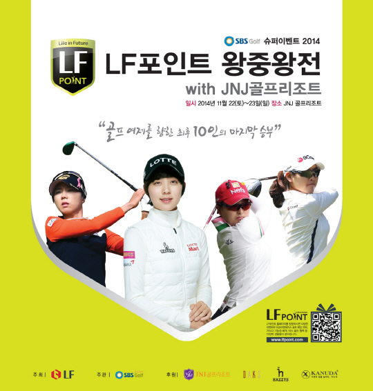 LF와 SBS골프가 주최하는 2014 'LF포인트 왕중왕전'이 오는 22일(토)부터 이틀간 전남 장흥에 있는 JNJ골프리조트(파72)에서 열린다.