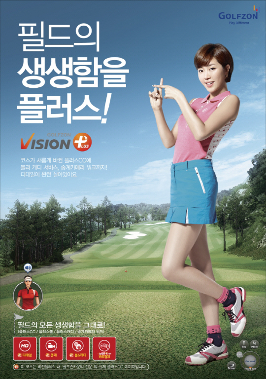 비전플러스는 실제 자연 환경을 동일하게 느낄 수 있는 Full HD로 제작된 골프코스와 중계방송을 보는 듯한 다이나믹한 카메라워크, 다양한 종류의 시뮬레이션 볼, 스마트한 캐디 서비스 등이 탑재된 프리미엄 서비스다.