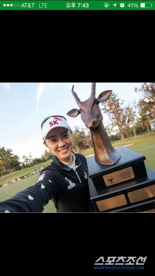 최나연이 LPGA 투어 개막전인 코츠 골프 챔피언십 우승 직후 셀카를 찍으며 기뻐하고 있다. 사진제공=세마
