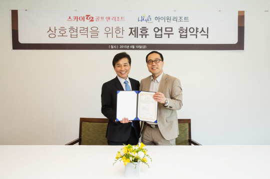 인천 '스카이72 골프 앤 리조트'와 강원도 '하이원 리조트'가 상호 협력을 위한 업무 제휴 협약식을 가졌다.