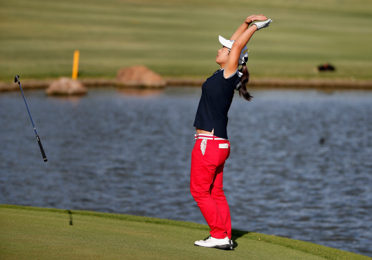 최종합계 11언더파 277타를 기록한 김세영은 박인비(27)와 함께 연장전에 들어갔다. 18번홀(파4)에서 열린 연장 첫 번째 홀에서 김세영은 약 150야드를 남기고 8번 아이언으로 시도한 두 번째 샷을 그대로 샷 이글로 연결해 짜릿한 우승을 차지했다. 박인비는 그린에 올라가지도 못한 채 우승컵을 내줘야 했다.