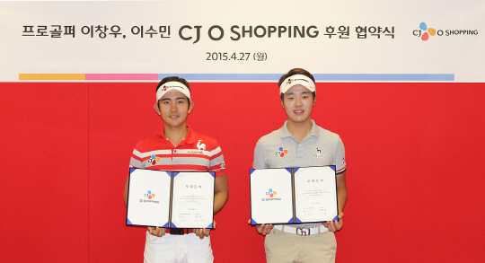 CJ오쇼핑은 27일 서울 방배사옥에서 이창우 이수민, 변동식 CJ오쇼핑 대표, 임직원이 참석한 가운데 후원 조인식을 가졌다. CJ오쇼핑은 "지속적인 유망주 발굴과 지원을 통해 한국남자프로골프의 발전 가능성을 높이고 국내 남자골프시장에서 열심히 뛰고 있는 젊은 유망주들의 꿈을 응원하고 지켜주고자 한국 남자프로골프계의 미래인 이창우 이수민을 후원하게 됐다"고 밝혔다. 이로써 CJ오쇼핑은 2014년 KLPGA 투어 신인왕 백규정, 김민선, 이창우 이수민을 비롯해 10명의 프로 골퍼를 후원하게 됐다.