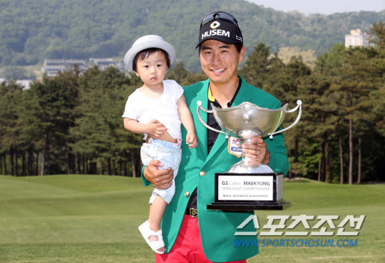 GS칼텍스 매경오픈에서 생애 첫승을 거둔 문경준이 아들과 함께 포즈를 취하고 있다. 사진제공=KPGA