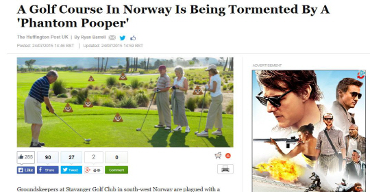 25일(한국시각) 각 외신들에 따르면 노르웨이의 스타방거골프클럽(Stavanger Golf Club)이 정체를 알 수 없는 무단 배변자로 인해 피해를 겪고 있다는 것.