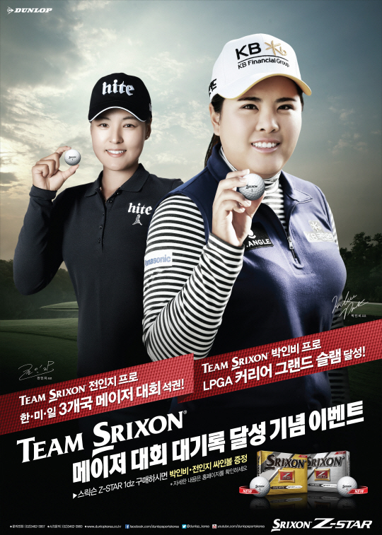 던롭스포츠코리아는 박인비의 LPGA 커리어 그랜드슬램 달성 및 전인지의 한·미·일 3개국 메이저 대회 석권을 기념해 '팀 스릭슨 메이저 대회 대기록 달성 기념 이벤트'를 전국 던롭 취급점에서 진행한다.