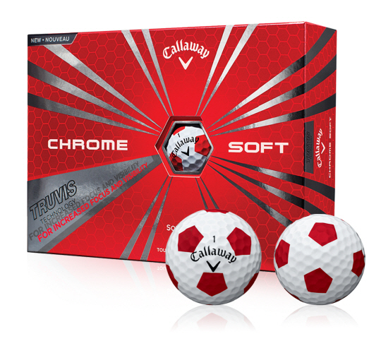 이번에 선보인 크롬소프트 '트루비스 버전'은 지난 1월 출시 후 뜨거운 호응을 얻고 있는 크롬소프트 볼에 붉은색의 트루비스 패턴을 적용한 것이 특징이다. 크롬소프트 '트루비스 버전'은 축구공을 연상시키는 붉은색 오각형의 패턴을 적용, 외관상 보기 좋을 뿐만 아니라 볼이 크게 보이는 시각적 효과로 어드레스 시 안정감을 제공해준다. 실제 캘러웨이골프가 최근 진행한 자체 페이스북 조사결과에 따르면 약 70%의 골퍼들이 크롬소프트 '트루비스 버전'이 일반 볼보다 더 크고, 안정감 있어 보인다고 응답했다.