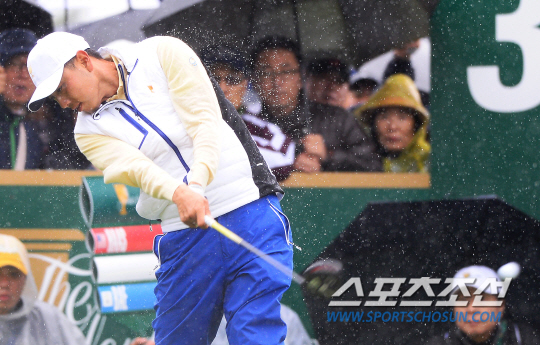 11일 인천 송도 잭 니클라우스 골프장에서 2015 프레지던츠컵 마지막날 싱글 매치 경기가 열렸다. 전날 1점차로 따라붙은 인터내셔널팀은 미국에 승점 9.5-8.5로 1점차 추격하고 있다. 양팀은 최종일 12명씩의 선수 전원이 나서는 싱글매치로 승부를 펼쳤다. 프레지던츠컵은 미국 PGA 투어의 주도로 1994년 출범 했으며 2년마다 개최된다. 출전 선수는 양팀에서 세계 랭킹 상위 10명과 단장이 추천한 선수 2명을 포함해 총 12명으로 구성된다. 최종일 싱글매치 3번홀에서 장대비를 뚫고 장쾌한 티샷을 날리고 있는 배상문. 인천= 송정헌 기자 songs@sportschosun.com/2015.10.11