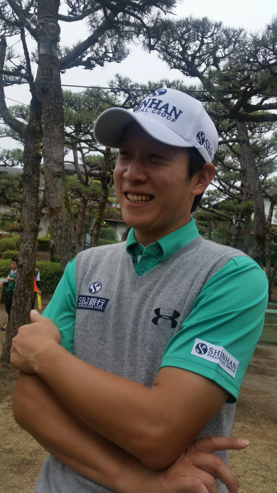 | 김경태가 던롭피닉스 토너먼트 마지막 라운드가 끝난 뒤 환하게 웃으며 취재진과 이야기를 나누고 있다. 사진제공=던롭스포츠코리아 |